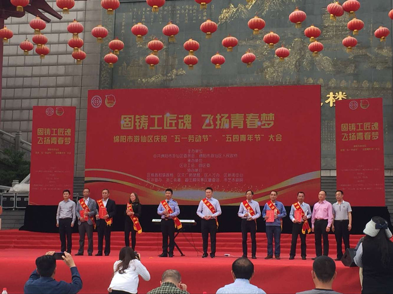 4月27日下午3點,綿陽市游仙區慶祝“五一勞動節”、“五四青年節”大會在越王樓廣場舉行。我公司新材料研發部部長黃杰榮獲綿陽市游仙區2017年“工人先鋒”稱號,并在本次大會上受到表彰。
