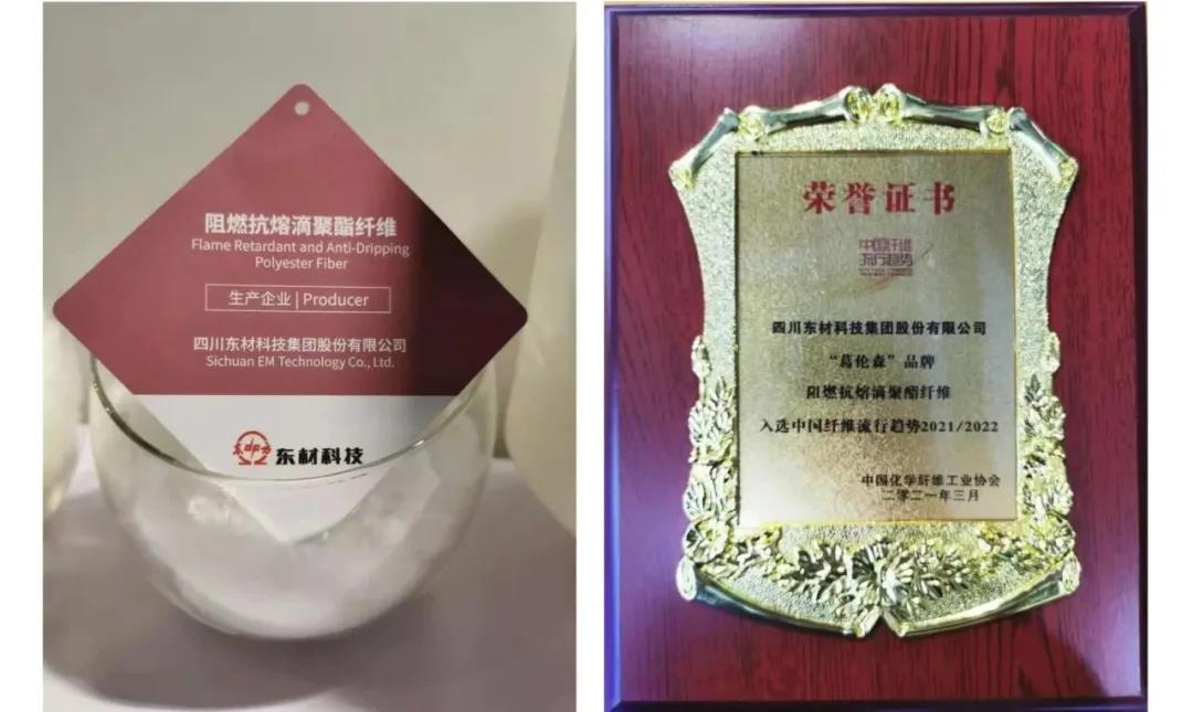 展會期間,“激蕩與領航”——桐昆·中國纖維流行趨勢2021/2022盛大開幕,東材科技葛倫森牌“阻燃抗熔滴聚酯纖維”入選“中國纖維流行趨勢2021/2022”。